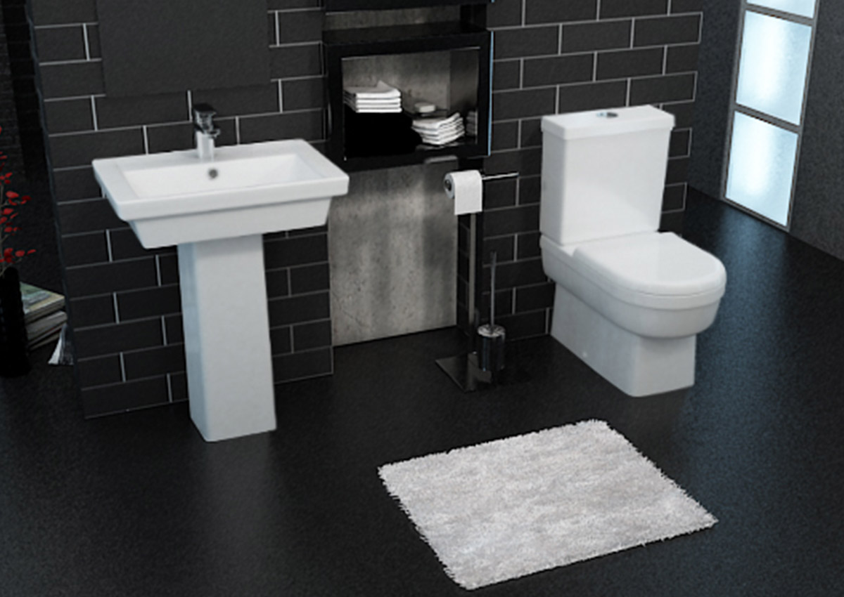 The Steps Set is a stylish and functional bathroom suite featuring a pedestal sink, a two-piece toilet, and a toilet seat. Crafted from high-quality white ceramic, it's both durable and easy to clean. Its sleek, modern design is perfect for contemporary bathrooms.