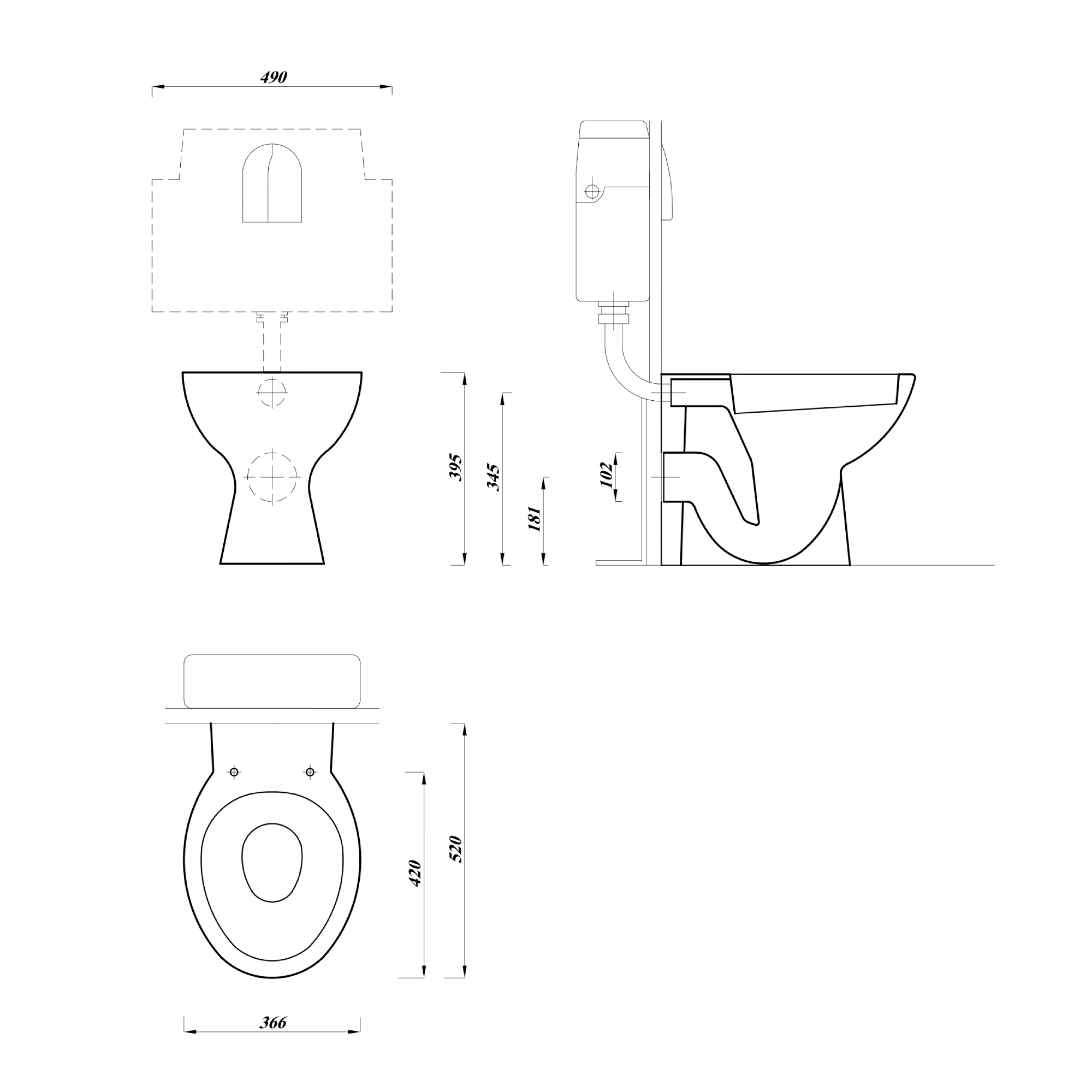 Back to wall toilet - Back to wall Close coupled