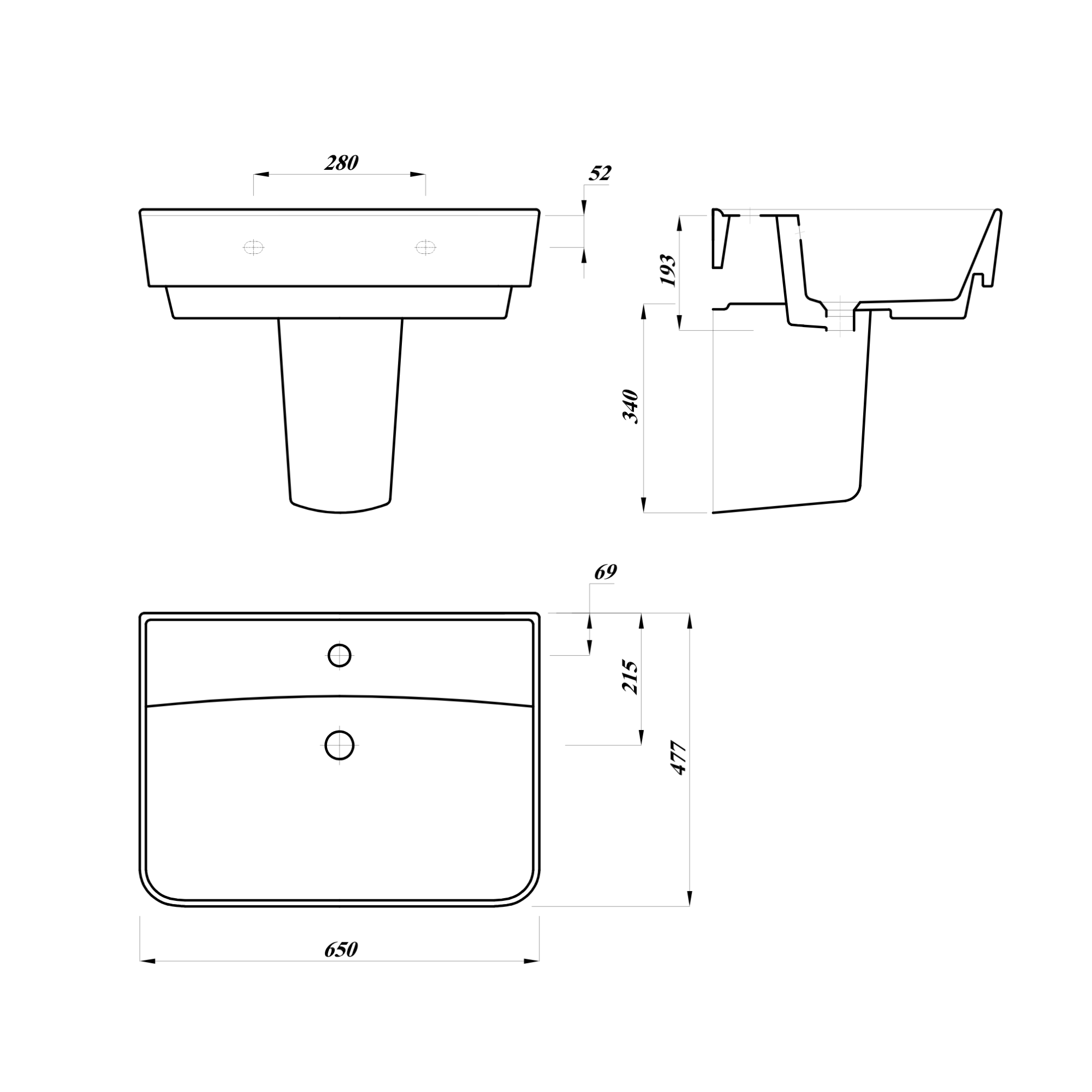 Basin With Semi-Pedestal