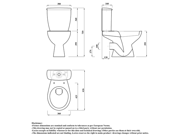 Toilet: 15.50 Kg / Cistern: 9.90 Kg