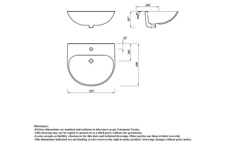 H-Line Round Basin Semi Recessed 55cm