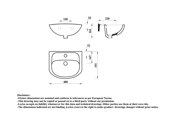 Atlas Basin 40cm Semi Recessed